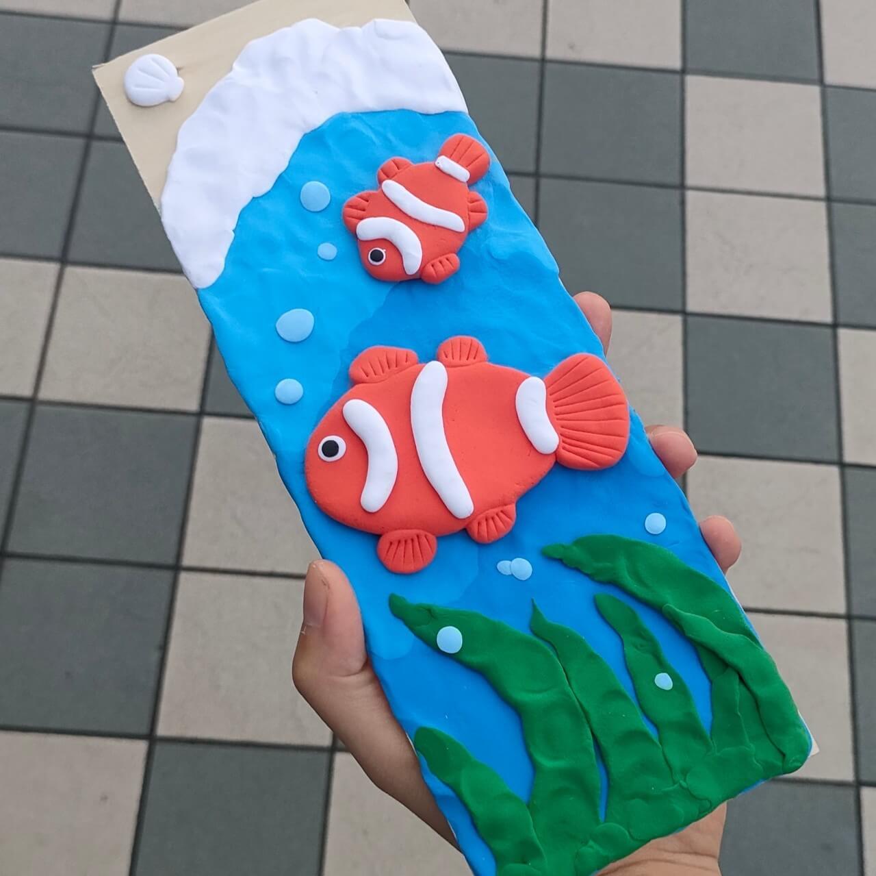 まずは素材選び。粘土は単体だと柔らかく、持ち帰ったり飾ったりするためには下に敷く素材が必要になります。